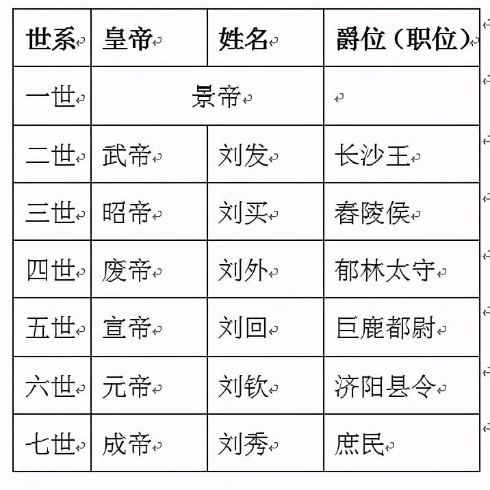 刘秀的六世祖长沙定王刘发,高祖父舂陵节侯刘买以及曾祖父郁林太守刘外都不是嫡长子,所以不能继承王位或者帝位,汉景帝有14个儿子,最早的太子是刘荣,后来被废除,改立第10个儿子刘彻为太子。
