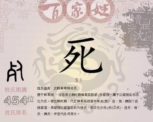 据学术界的研究考证,死姓起源于一个非常古老的鲜卑族姓氏,在隋、唐时期即已经汉化,其族人皆融入到了汉族之中,但是人口数量却非常稀少。