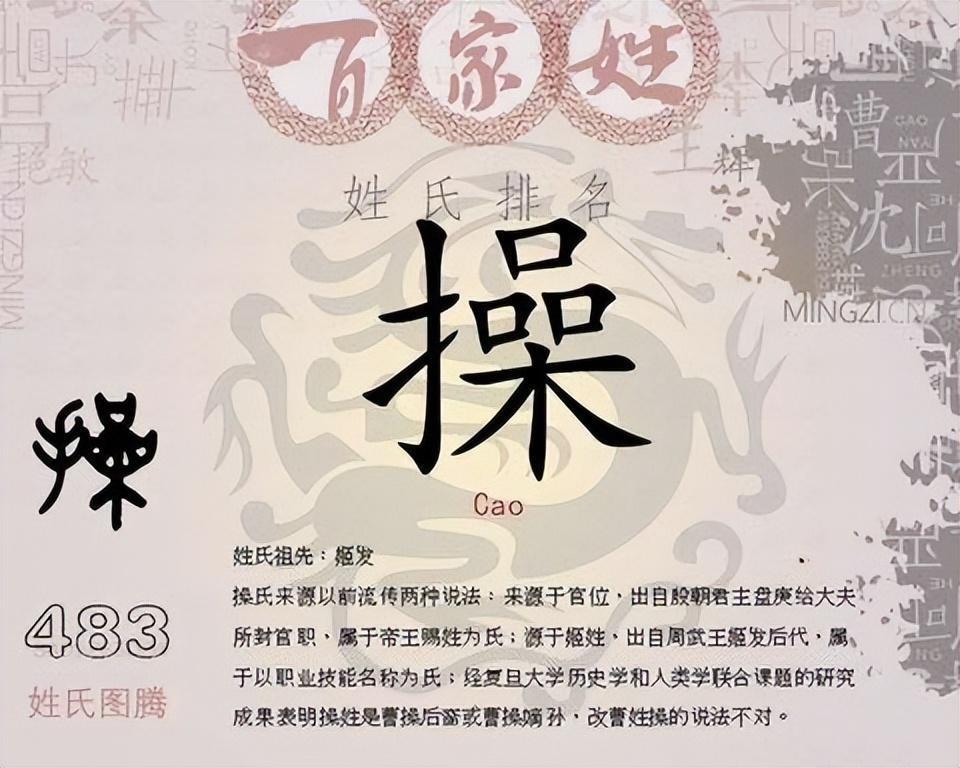 让人好奇的是,如果姓操,会给孩子取个什么样的名字呢?也许真的还是有点难度的哩。