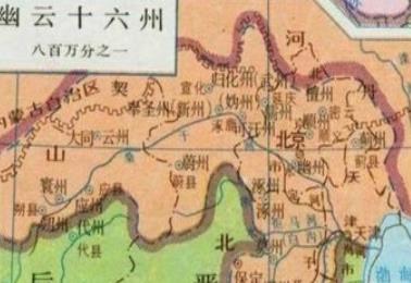 从地图上可以很清楚地看到,这十六州自东向西包括了今天的天津、北京、河北北部、山西北部,基本上都分布在长城的内(南)侧,也即长城这条重要军事防线背后的战略支撑点,其中瀛、莫二州已深入到河北腹地数百里。失去了这一片山势险峻的地区,中原王朝的整个北方就失去了一条阻击“胡人铁骑”的天然军事屏障,南下千里再无险可守,直至黄河岸边全部是一马平川,中原从此门户大开。