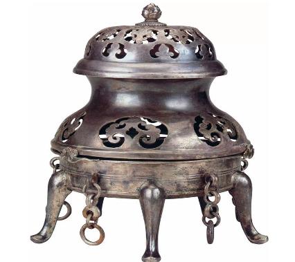 火盆演变到后面变成了熏炉,特别是到了宋代时期,深受文人的喜爱。在刘向《熏炉铭》中描述:"嘉此正器,嶃岩若山;上贯太华;承以铜盘,中有兰绮,朱火青烟。"随着陶瓷的发展,出现了玉制熏炉,翡翠熏炉等精良的器具。与火盆不同的是,熏炉中加入了香粉,兼具熏香和取暖,使用价值和美观程度远远超过火盆。