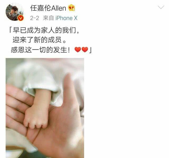 任嘉伦宣布晋升奶爸!发微博并配文:“早已成为家人的我们,迎来了新的成员。感恩这一切的发生!”