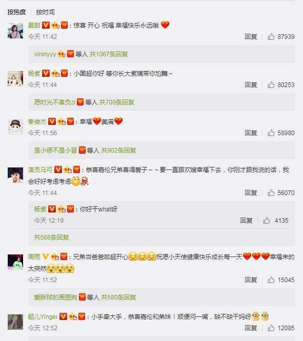 此次的网友同上次比起来显得淡定了许多,微博评论下尽是圈内好友献上的祝福!
