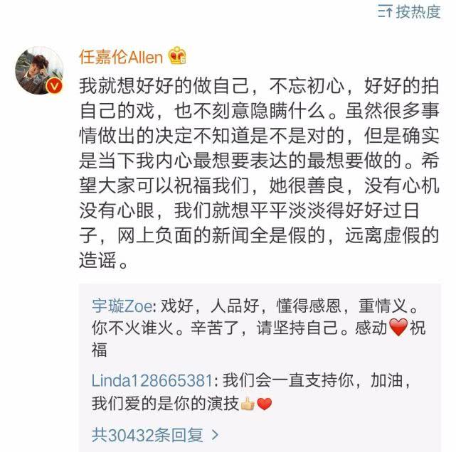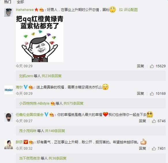 任嘉伦女友的神秘面纱一经揭开,网友们立马炸了锅,在任嘉伦的微博下称赞他:“在事业上升期公布恋情佩服他的勇气!”