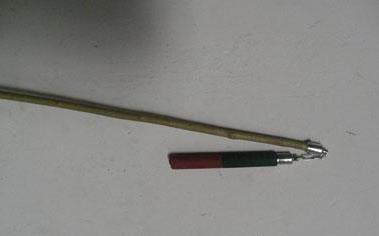所谓铁连枷,是一种不很常用的奇门兵器,实际属于双节棍的一种。铁连枷主体是一根五尺长粗木棍,两头包裹铁皮,一头连着长三十公分左右的铁链。在铁链另一头,连着一节外包铁皮、镶嵌狼牙钉的短棍。铁连枷的最大特点是会“拐弯”,在进攻时用力击打对方,对方无论用藤牌或者兵器遮挡,都只能挡住长棍,而铁链另一头的短棍都会因惯性改变方向,击中对方头部或者身体其他部位,是抗击侬智高的藤牌军的不二之选。