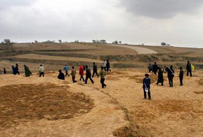 2006年甘肃某地发生集体盗掘古墓事件,警察到来后盗掘者纷纷逃跑。从手中拿的工具看,仍以铁锹等为主,很显然这是一伙普通的农民盗墓群体,并非专业团伙,因为这种工具早已被专业盗墓贼淘汰。