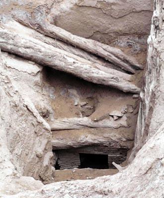 生土较为纯净,给人以鲜活、板结之感,没有人类生活遗存的包含物。所谓的熟土因为已经过人为的扰动,土质较杂,相对疏松一些。凡大型墓葬的填土一般都经过夯打,有夯层和夯窝,有的填土内还有人类生活的包含物。这些都成为判断是否为古墓葬的重要依据。朱熹祖母古墓葬被墓贼挖开的2个洞穴,直直向着墓穴方向延伸(发现后略作覆盖)。