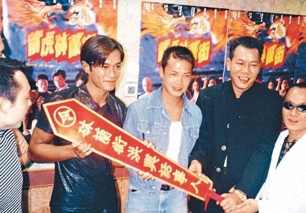 图为电影《龙虎钵兰街》的杀青现场,古天乐,谢天华,李兆基,吴志雄在一起宣传新片。90年代是李兆基最混的好的几年,因为他接了大量的黑帮题材电影,开工多,收入自然也就多,与多位香港一线大咖多次合作。