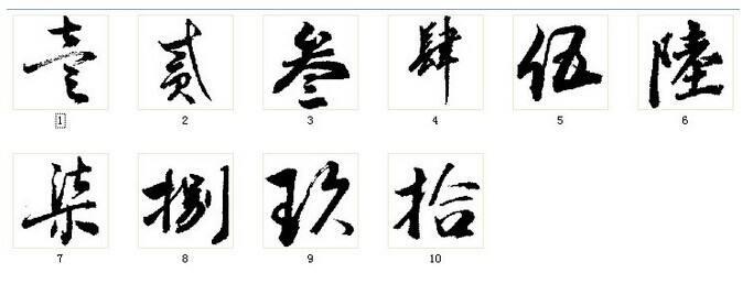 一到十大写分别是:壹、贰、叁、肆、伍、陆、柒、捌、玖、拾。