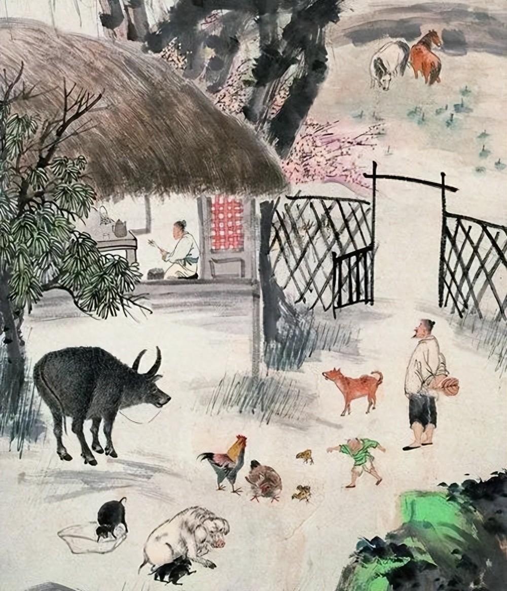 饲养六畜与生产有密切的关系。其中尤以猪与人们生产、生活的关系更为密切。春秋战国以来,人们对于猪粪肥的肥效作用,评价极高。猪粪肥一直是我国农村主要的肥料之一。猪早熟易肥,因而是人们的主要肉食对象之一。战国时,孟子说过“一家人能养五只母鸡、两头母猪,老人们吃肉就不会发愁”这样的话,可见自古以来,在农村养猪就是受到极大重视的。马能负重,挽力强,役用价值很高,所以以前被列为六畜之首。起初,人们用它拉车;后来,被用来骑乘,它在古代交通中占有很重要的地位。牛,力量大,耐力强,是农村中普遍饲养的役畜。大约自殷商时起,它就被用来拉犁耕地。春秋时期,铁犁的应用,大大提高了牛耕的作用。汉武帝时,赵过改进了农具和耕作技术,大力推广牛耕,使牛耕的方法传播到边疆地区。从此,牛便成为我国古代农村中最重要的役畜。羊、犬、鸡也是古代农村中喜欢饲养的家畜。(宋生易惠中)