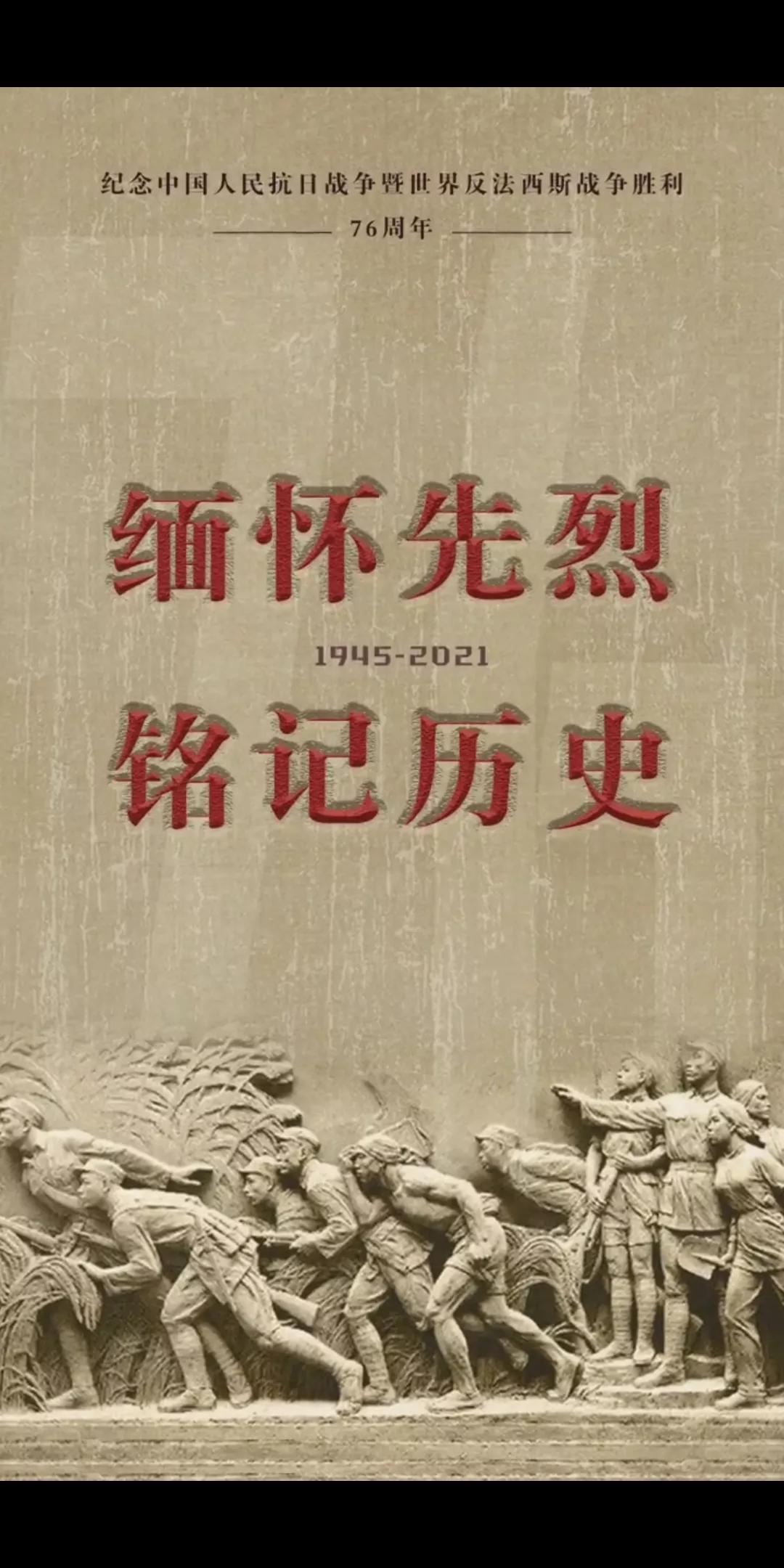 在这个伟大的纪念日里和以后的日子中,我们要缅怀先烈,牢记历史,吾辈自强,感恩前辈们为我们的和平做出的牺牲,爱我中华,振兴中华。