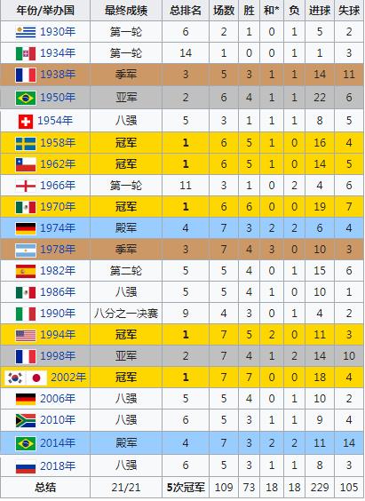 五星巴西正是在一代又一代巨星的率领下谱写了足球史上最辉煌的篇章,尤其是进入近代以来巴西队基本上都能稳定在八强之列,“足球王国”实至名归。