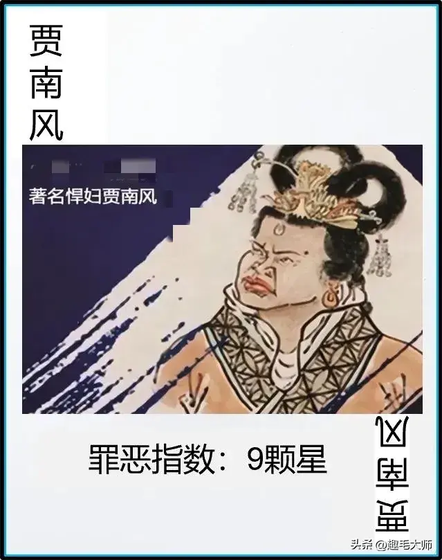 貌丑心更丑的皇后,贾南风的丈夫就是历史上著名的脑残皇帝晋惠帝司马衷。心狠手辣的贾南风直接引起了“八王之乱”,让整个中华大地生灵涂炭。更使西晋“宗室日衰”,大一统的中国,从此陷入了三百多年的分裂割据局面,绝对是千古罪人。