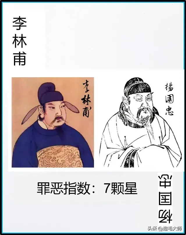 中国历史十大千古罪人第九名:李林甫或杨国忠,千古奸相