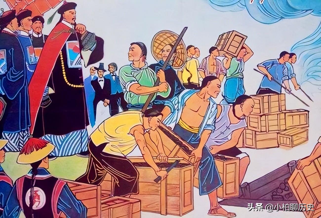 林则徐在虎门公开销毁鸦片,史称虎门销烟。