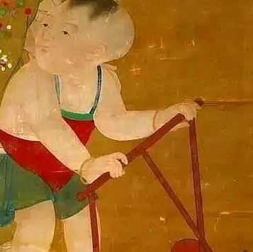 看上去与今天的儿童学步车已经非常相近了,儿童可以推着车子做依靠,现在的一些学步车也还是这样的,可见古人的智慧。