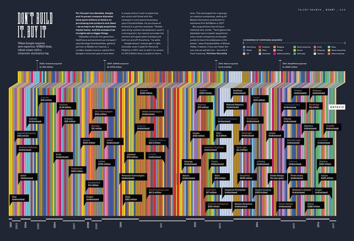 我们今天所知道的谷歌是谷歌多年来构建或收购的所有产品和服务的结晶。 该公司最好和最明智的收购一直是在它没有特殊专业知识但仍与公司的核心搜索业务密切相关的领域进行的收购。