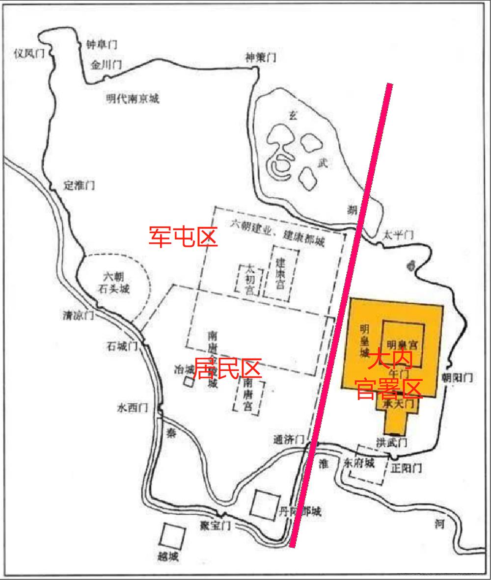 正阳门座落于明南京紫禁城的中轴线上,其地位明显高于另外十二座城门,在明初时期非一般百姓所能出入。明朝南京城,大致可以以通济门为东西界线:东侧是皇城大内及中央官署(如六部等)所在地;西侧才是普通市民居住之所。