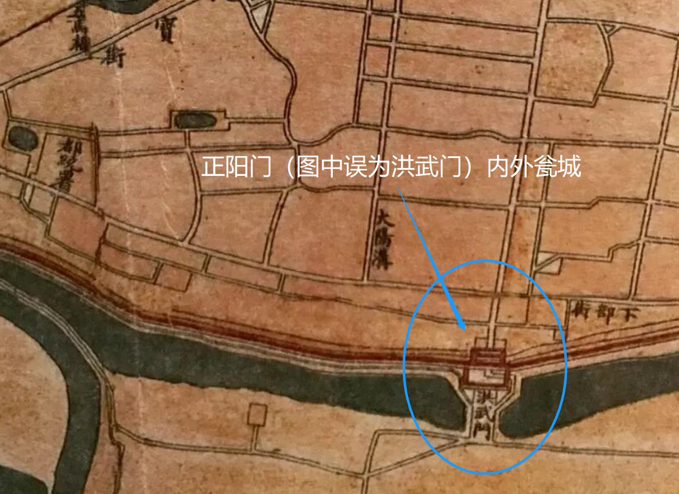 一度人们认为正阳门只有内瓮城,并无外瓮城。2004年考古人员在光华门外靠近护城河边发现了一段城墙基础,基于无外瓮城的固有认识,当时尚无法解释为什何在城门之外还有这么一段城墙。在近年发现的一幅流传海外的绘制于晚清时期的《陆师学堂新测金陵省城全图》中,人们发现正阳门有外瓮城,结合之前的考古发现,证实了这一点。