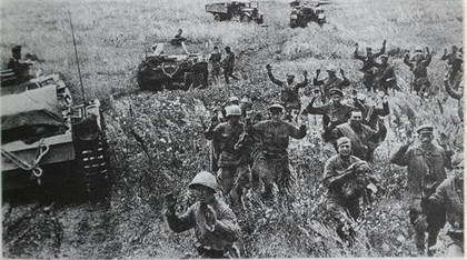 1941年9月15日,德军中央、南方两个集团军群合作,在基辅战役中将苏联西南方面军主力包围。苏联军队70个师血战10天,苏联红军少数突围,66万余人被歼灭,其中有6万名军官,包括西南方面军司令基尔波诺斯上将、参谋长图皮科夫中将在内的多位高级将领在突围战中阵亡。希特勒将这次围歼战称为“史上最大的围歼战”。但是随后,在攻击顿河畔罗斯托夫的战役中,由于主力部队都调往了莫斯科地区,德军遭到了失败。