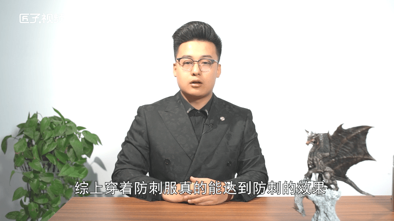 根据部级产品标准,防刺服的防护级别24焦耳动能,我们将刀用力刺向防刺服内胆,防刺服没有被刺穿。综上,穿着防刺服,真的能达到防刺的效果。