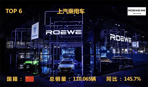 上汽乘用车能上榜,着实让我有点意外,第一时间竟没想到上汽乘用车有什么代表性的车型,2021年上汽乘用车全年累计销售110,065辆,同比增长145.7%。