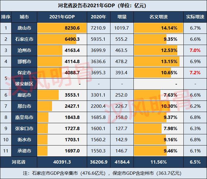 GDP增量接近于省会石家庄(GDP总量6490.3亿元,含辛集市GDP476.6亿元)的两倍,相对于石家庄的领先优势大幅扩大。