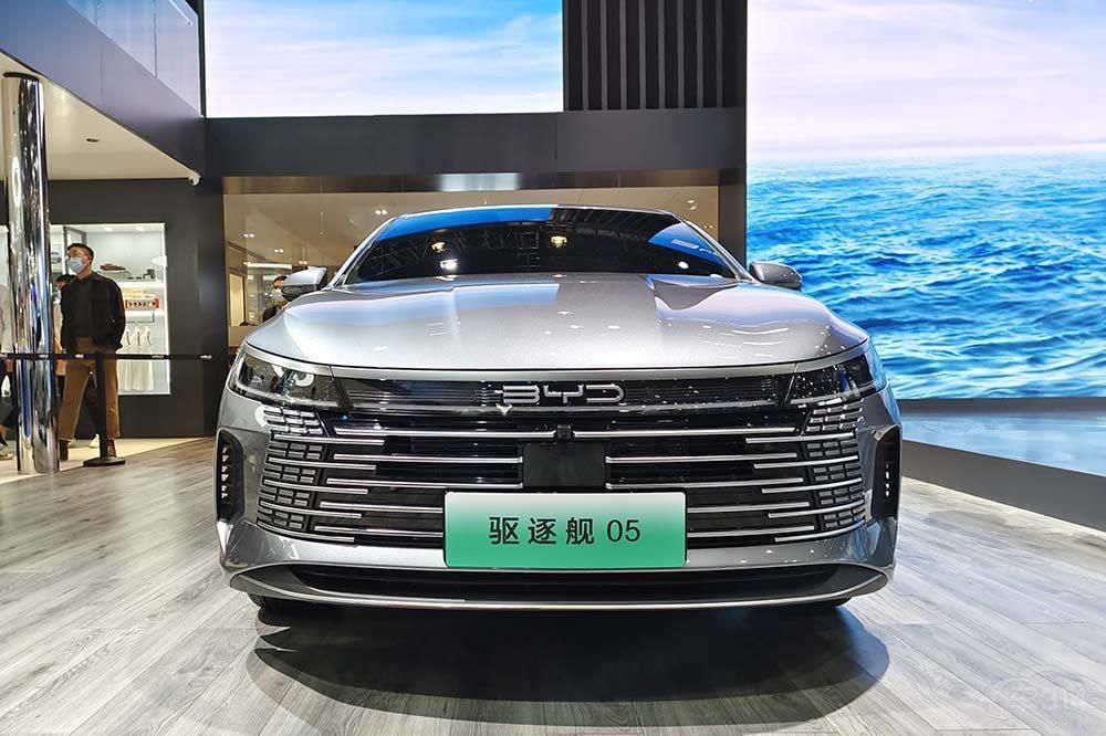 比亚迪驱逐舰05采用无边框设计进气格栅,其内为横向交错的镀铬材料装饰,两侧狭长大灯与中间嵌入字母标识的熏黑饰条相连,车侧略带弧形的腰线搭配溜背造型。