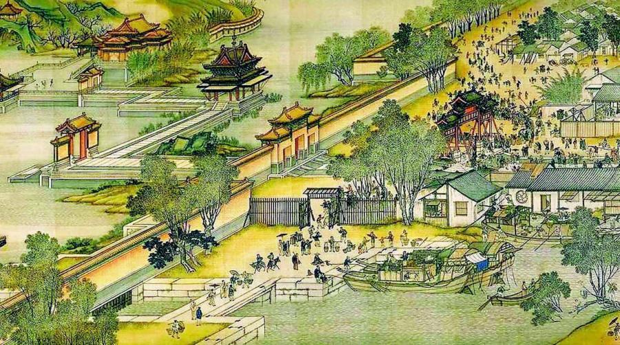 分析画中的城门楼,此画卷所描绘的应该是从“清明坊”到汴河口这一段上河的繁华景象。