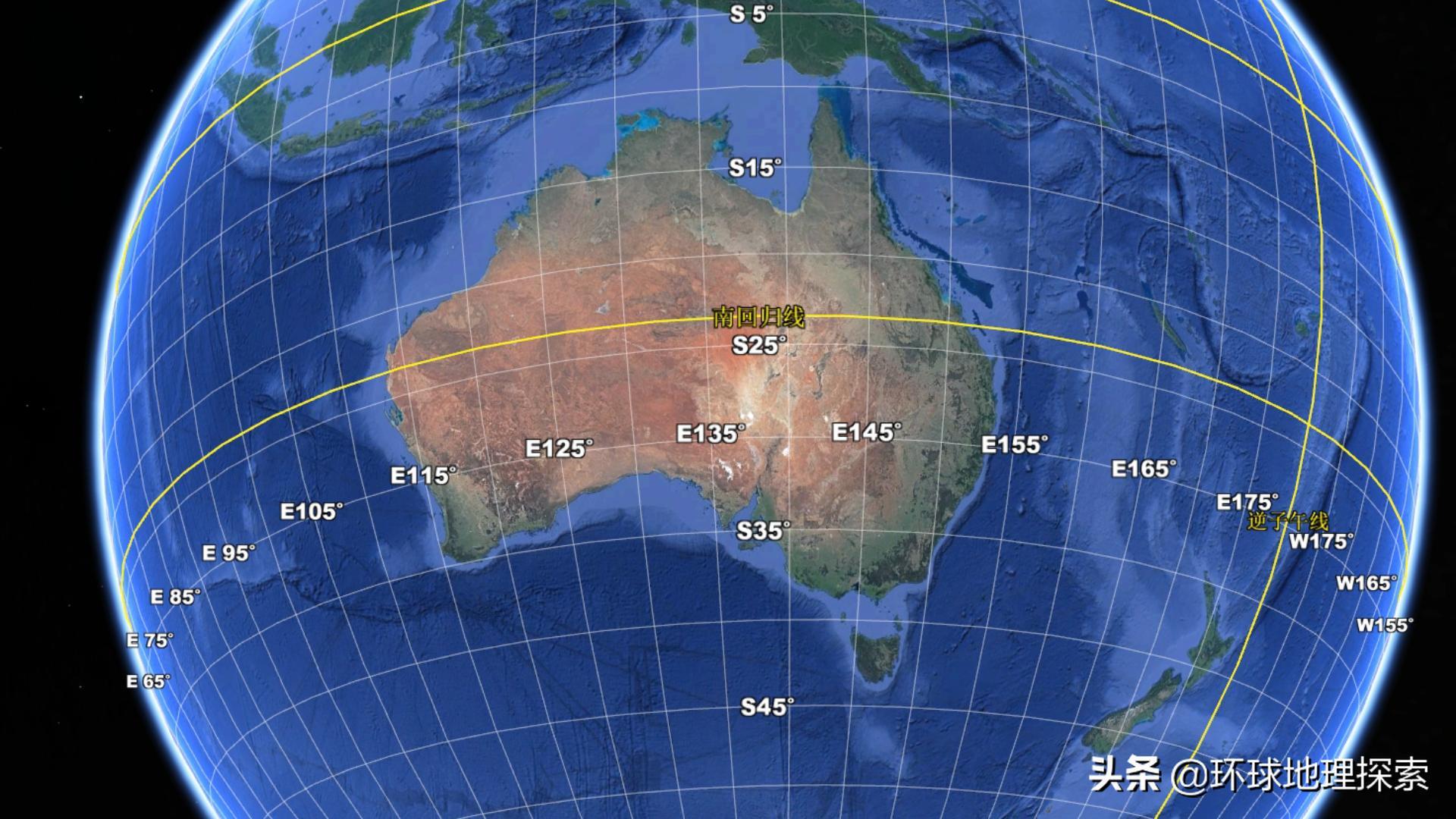 陆地中央大致被南回归线横穿而过,气候上几乎与我国南方地区正好相反的地理特征。