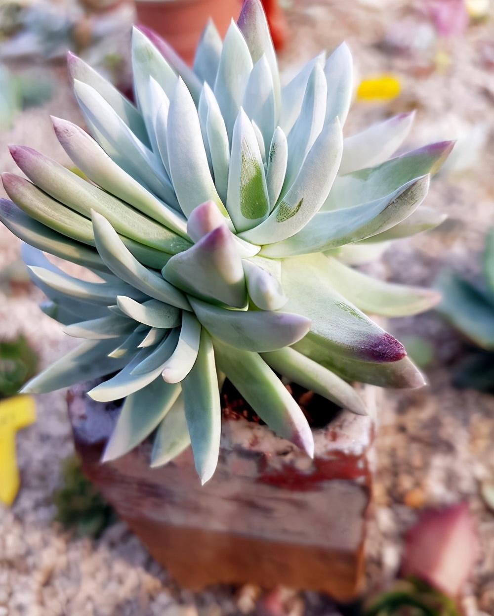 根据生长环境气候条件的不同,布瑞东尼一般可对外表现为两种形态。其一,植株叶面覆盖着一层厚厚的白粉;其二,植株表面“裹”有的白粉不多,能够清晰地看到大片绿色。