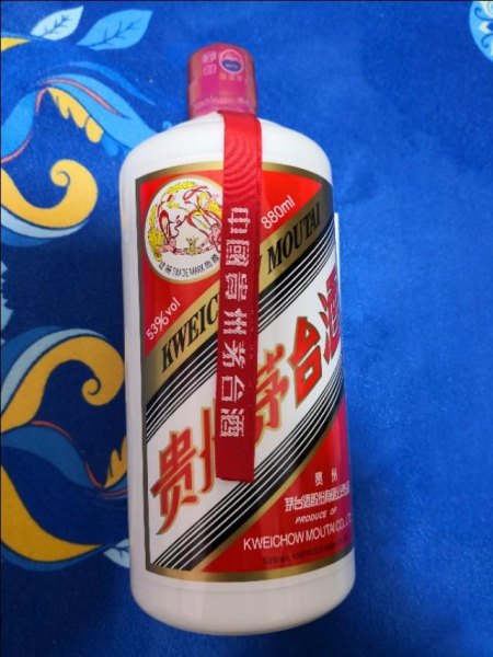 三是在品牌白酒的收藏中, 同一品牌的白酒收藏价值也不一样。大批量生产与小批量生产的不一样,容量大与小也不一样,普通产品与生肖版、纪念版、特制版等也不一样,后者一般比前者收藏价值大。(图示的是880ml的茅台酒,很少见,稀有藏品。)