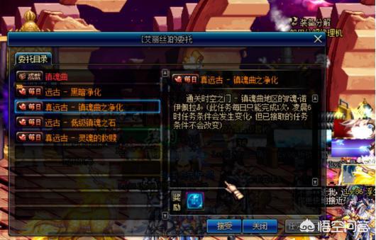 1、DNF去异界需要先完成相关的成就任务,首先需要角色人物到达90级后接到“开启远古地下城之门”,如下图所示: