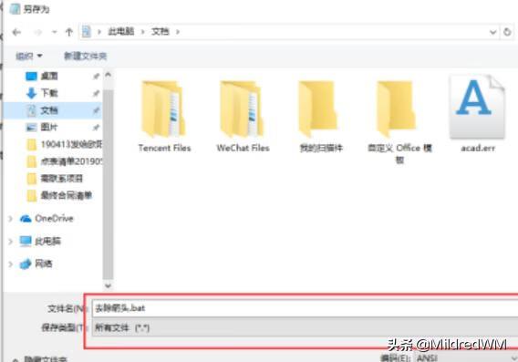 2.粘贴好代码以后,点击文件另存为,文件类型选择“所有文件”文件名字后缀改为“.bat”如下图所示: