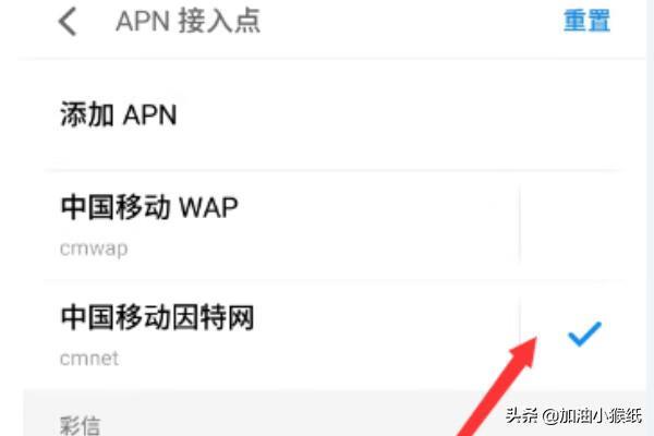 2、APN设置:有些网站需要设置相应的APN才能获取到最快的连接速度,除了少部分连接运营商内网的网站,一般建议将上网的APN设置成CMNET,不通过代理的中间环节,上网速度更快。