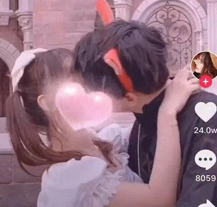 然后就是在抖音上分享两人随时随地的亲亲日常~