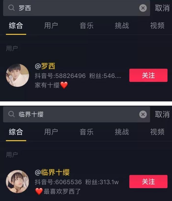 先是抖音签名互相表白,一个写“家有十缨”,一个写“最喜欢罗西了”: