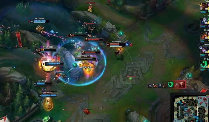 20分钟T1战队强势进攻连续逼出JDG技能,推掉中路一塔以后打算撤退。结果Faker泰坦再次出钩被反杀,千珏还是不舍得开大救他,因此JDG战队拿到第三条小龙!