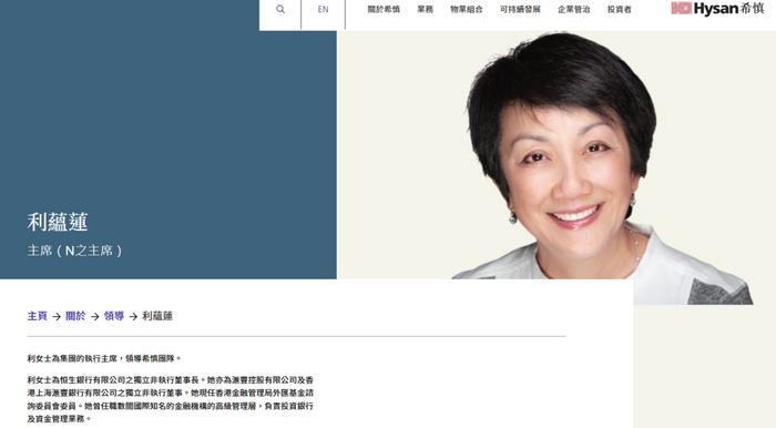 希慎置业的官网上,领导层也挂着她的名字和头像,说她是公司的执行主席。真·大女主的画风了。