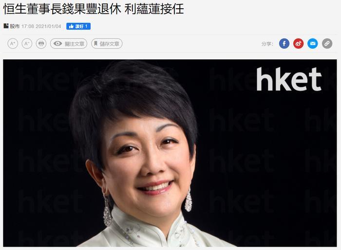去年,恒生董事长钱果丰退休,67岁的独立非执董利蕴莲就接替他的位置,出任恒生新董事长,成为第一位出任该职位的女性。