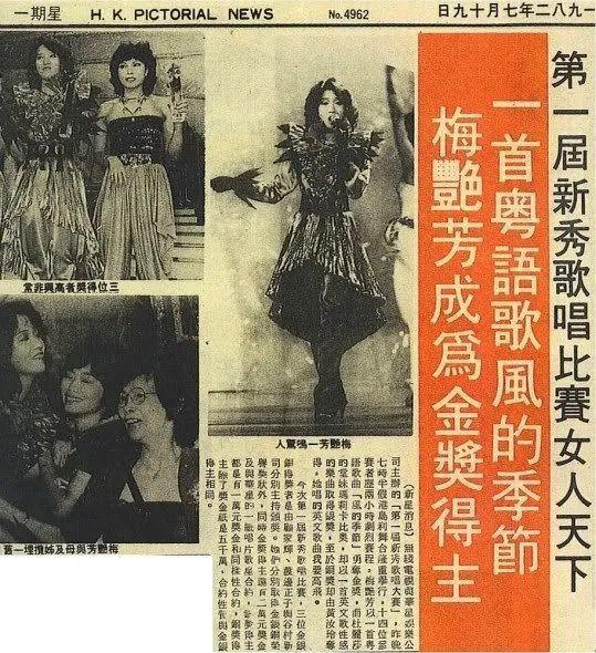 1982年,第一届新秀歌唱比赛在利舞台举行,18岁的梅艳芳参赛,凭一首徐小凤的《风的季节》拿下冠军。之前我们写过:
