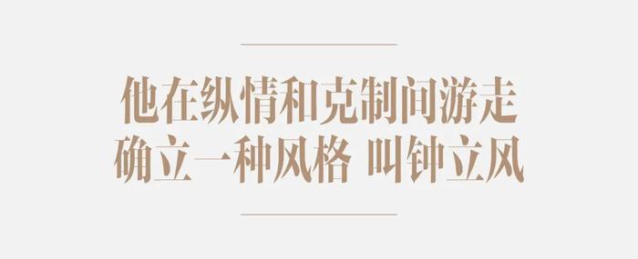 即便他在演唱时几乎竭尽所能地全情投入,但那些在歌词中被他隐去、遮蔽的部分,被他按下不表的部分,依旧构成了钟立风作为“游吟歌者”克制婉转的那一面。也许诗人T.S.艾略特是对的,“诗歌不是对情感的放纵,而是对情感的逃避”。在歌曲里,钟立风曾化身成为很多人,在那样多的人事物间往来穿梭,摄取他们的灵魂,然后,抽身而去。他是他们,又都不是他们。在于纵情和克制间游走的游戏中,他确立起了一种独属于他的风格:“有一种风格,叫钟立风,像钟表一样精确地确立起了自己的风格。”
