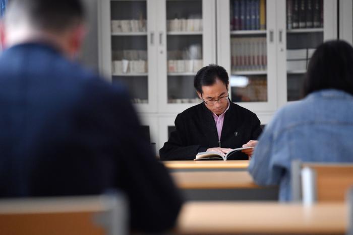 朱彦军在静宁县图书馆阅览室看书(4月10日摄)。新华社记者 陈斌 摄