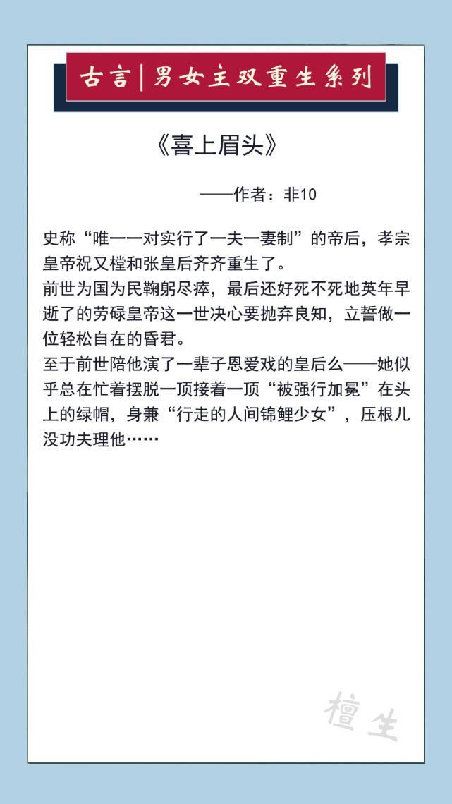六本【男女主双重】的古代言情小说推荐,献给喜欢阅读的书友们!