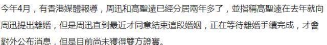 港媒曾报道,周迅与高圣远早已分居多年,透露到高圣远早已对周迅提出离婚要求,周迅最后也答应了高圣远的要求,并且两人决定等到离婚手续结果,会宣布离婚消息。