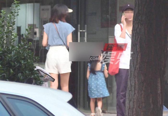 在进入到公园之前,高圆圆还不忘记从旁边的小道走到商量里面,小可爱女儿也跟着一起进入,出来的时候小可爱则是拿着一个雪糕开始吃了起来。