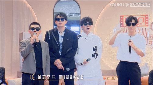 金志文、颜人中、毛不易和胡夏模仿《古惑仔》给古巨基打call的那段也像是被什么奇怪的东西夺了舍,相似度10%,羞耻度100%,看毛不易憋笑努力的表情搞笑指数10000% ↓↓(毛老师,你要是被绑架了你就眨眨眼哈哈哈