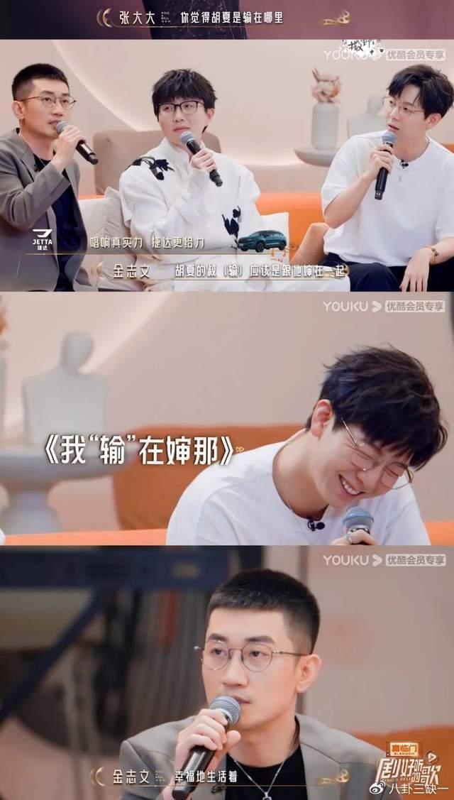 当本季显眼包大奖颁给陆虎和张远之后,张大大问胡夏输在哪里,旁边的金志文抢答:他叔(输)应该跟他婶儿在一起,幸福地生活着(能用谐音梗把张大大整词穷的人真的不多见了