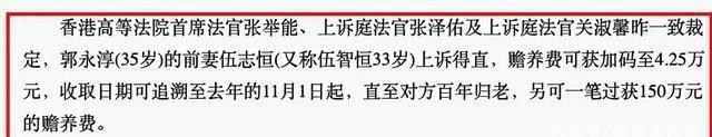 因抚养费问题,伍智恒将郭永淳告上了法庭,她希望每月的赡养费能给到4.2万。
