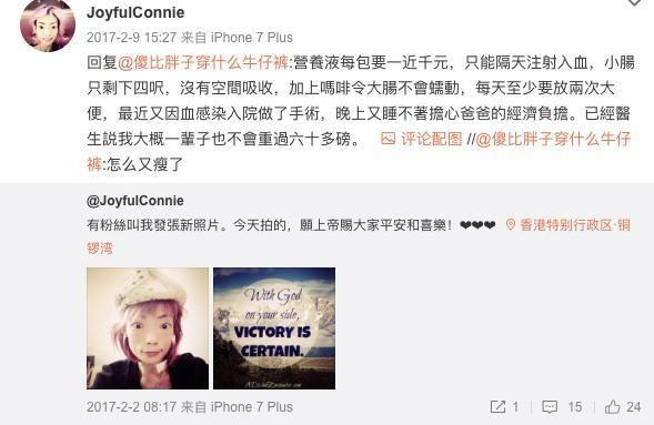 今年春节,她发布照片,看起来比之前状况好了一些。